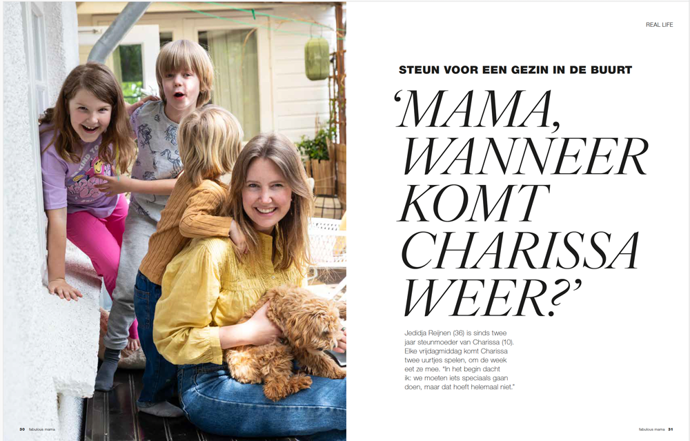 Juli 2025. Jedidja Reijnen (36) is sinds twee jaar steunmoeder van Charissa (10). Elke vrijdagmiddag komt Charissa twee uurtjes spelen, om de week eet ze mee. “In het begin dacht ik: we moeten iets speciaals gaan doen, maar dat hoeft helemaal niet.” In Fabulous Mama vertelt ze hoe het hun leven verrijkt heeft.