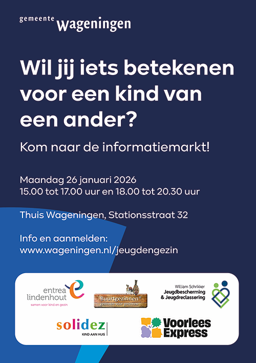 Op maandag 26 januari 2026 wordt in Wageningen de informatiemarkt georganiseerd ‘iets betekenen voor een kind’. Hieronder meer informatie over deze markt, waar ook Buurtgezinnen aanwezig zal zijn: