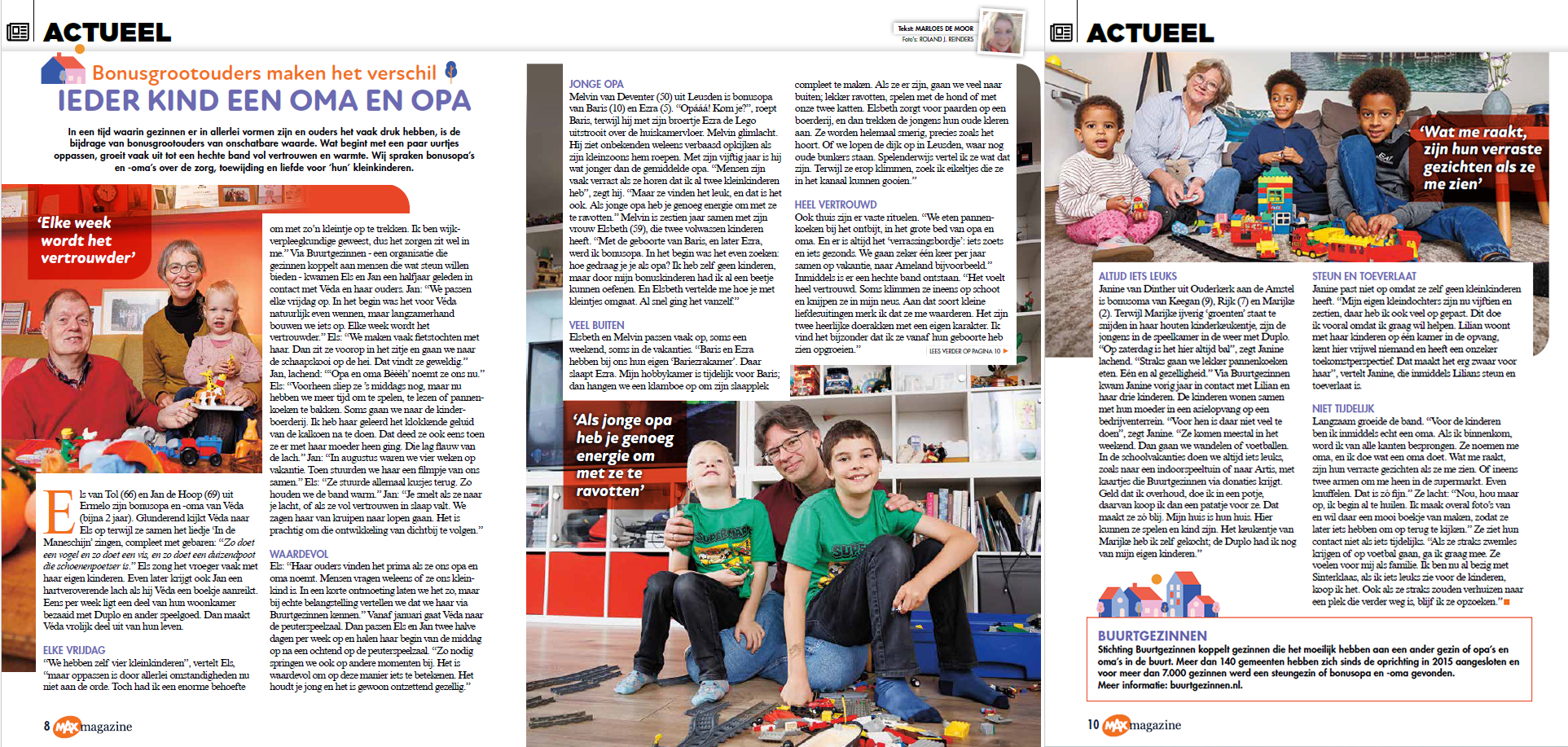 MAX Magazine sprak bonusopa’s en -oma’s die via Buurtgezinnen zijn gekoppeld aan een gezin in de buurt, over de zorg, toewijding en liefde voor ‘hun’ kleinkinderen.